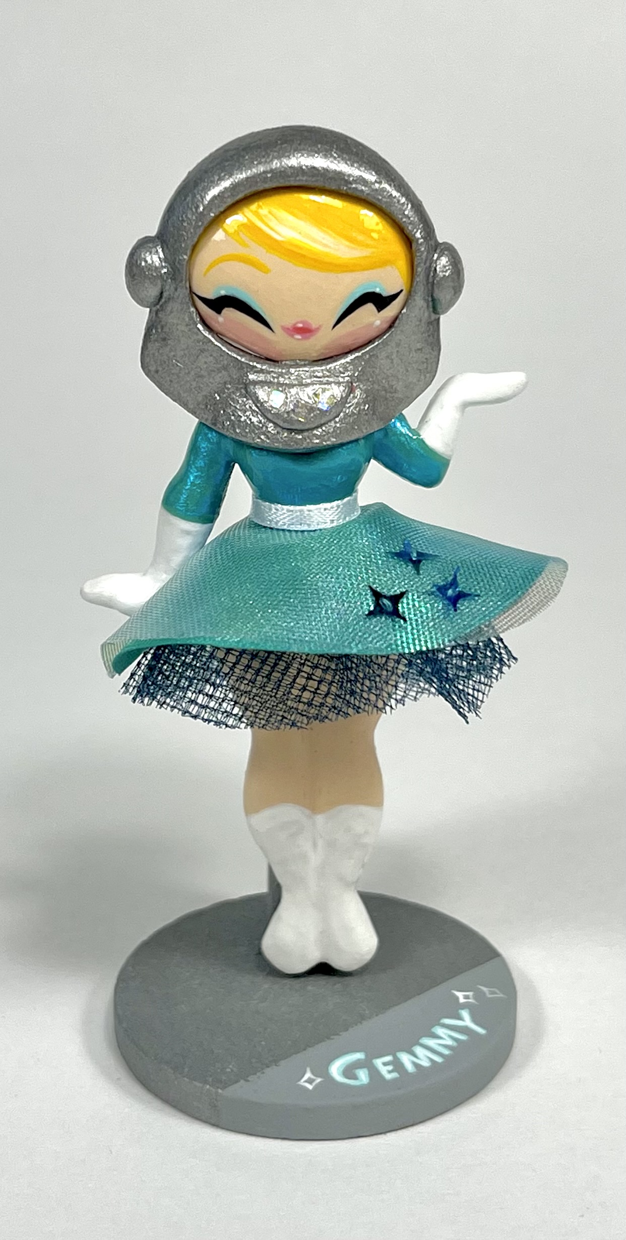Materials for babe: resin, paint, pin back, magnet, adhesives, PLA plastic, mixed media accessories, protective gloss finish