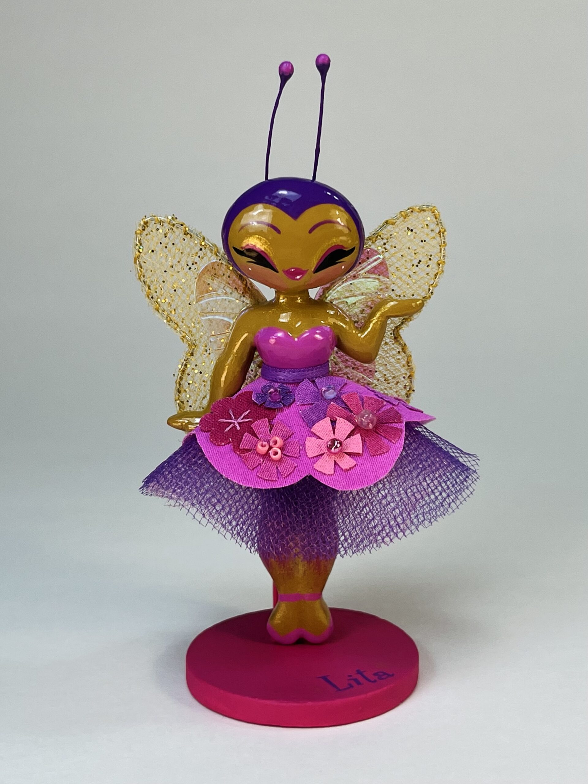 This hand cast, hand painted, hand decorated brooch babe is perfect to adorn any outfit or bring a little joy to your every day wardrobe. Each babe in this series is a unique item with its own character and personality, and comes with her own little magnetic name stand!
