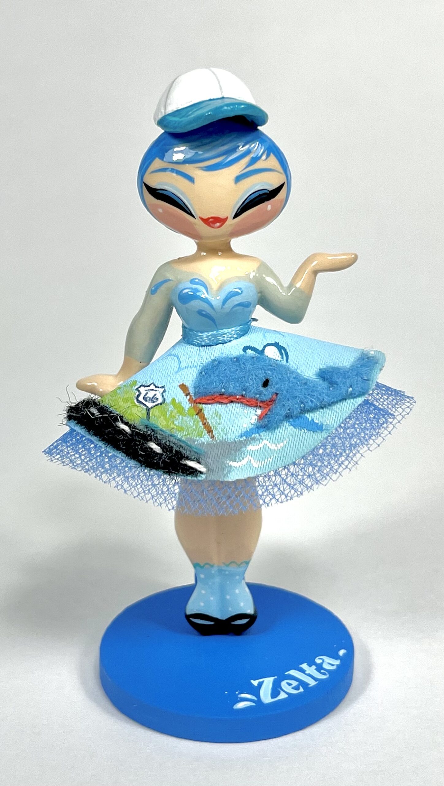 Materials for babe: resin, paint, pin back, magnet, adhesives, PLA plastic, mixed media accessories, protective gloss finish